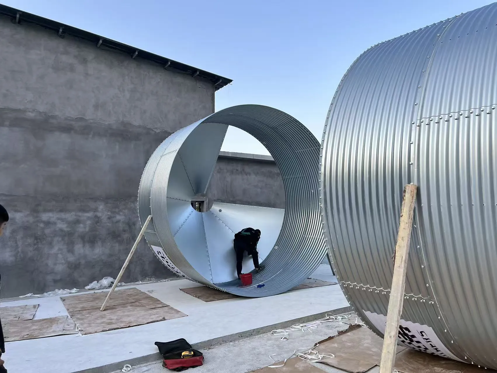 बांधकामाचा कालावधी तीन महिने अपेक्षित आहे. सध्या, कामगार फीड सायलो बसवत आहेत आणि बार्न पेन पूर्ण करत आहेत आणि बांधकाम जोरात सुरू आहे.