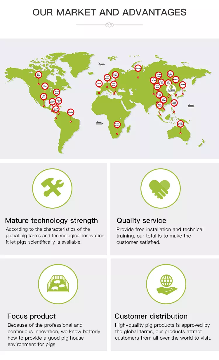 3. विशिष्ट धान्याचे कोठार मांडणी आणि व्यवस्थापन गरजांशी जुळण्यासाठी लवचिक कॉन्फिगरेशनसह, सर्व स्केलच्या डुक्कर फार्म फिट करण्यासाठी पूर्णपणे सानुकूल करण्यायोग्य.